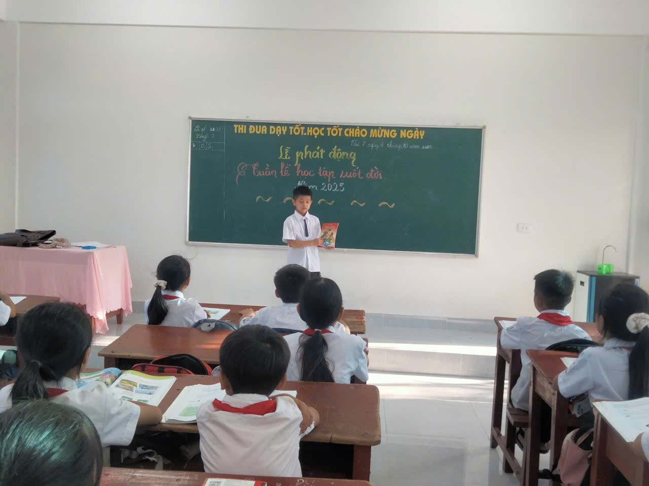 Buổi lễ được tổ chức trong không khí vui tươi, hào hứng với sự tham gia đầy đủ của cán bộ, giáo viên và toàn thể học sinh nhà trường. Đây là hoạt động thiết thực nhằm nâng cao nhận thức của học sinh về vai trò, ý nghĩa của việc học tập thường xuyên, học tập suốt đời trong thời đại tri thức hiện nay.