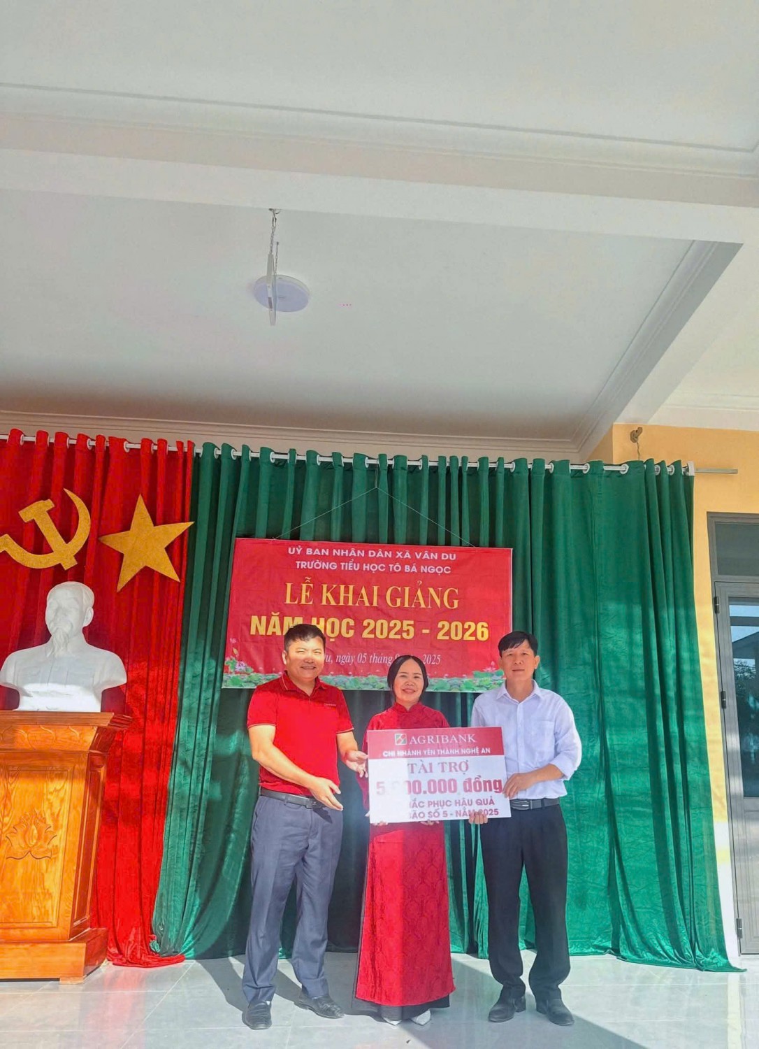 ( Ngân hàng AGRIBANK - YÊN THÀNH tài trợ nhà trường khắc phục hậu quả Bão số 5 gây ra)
