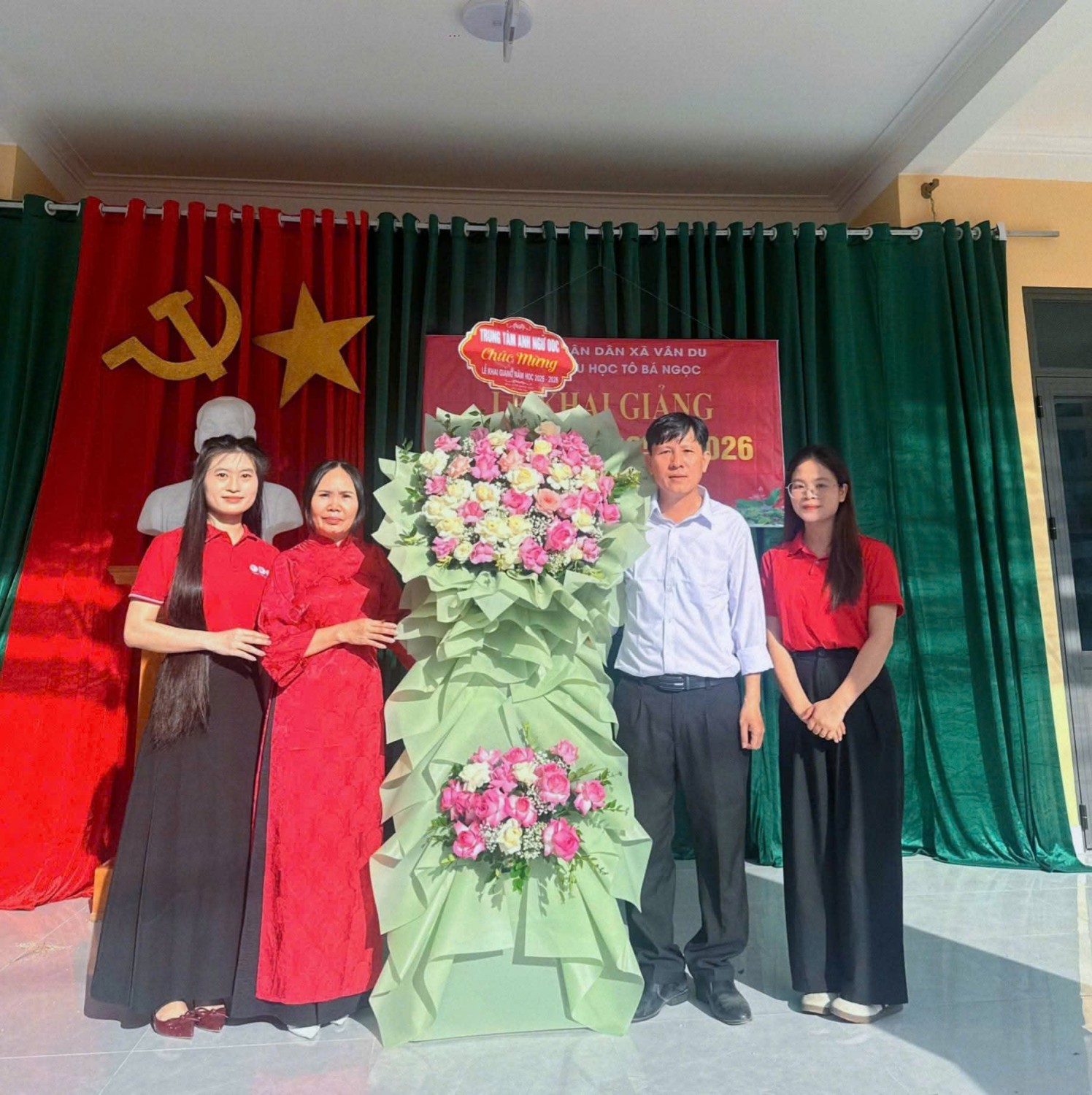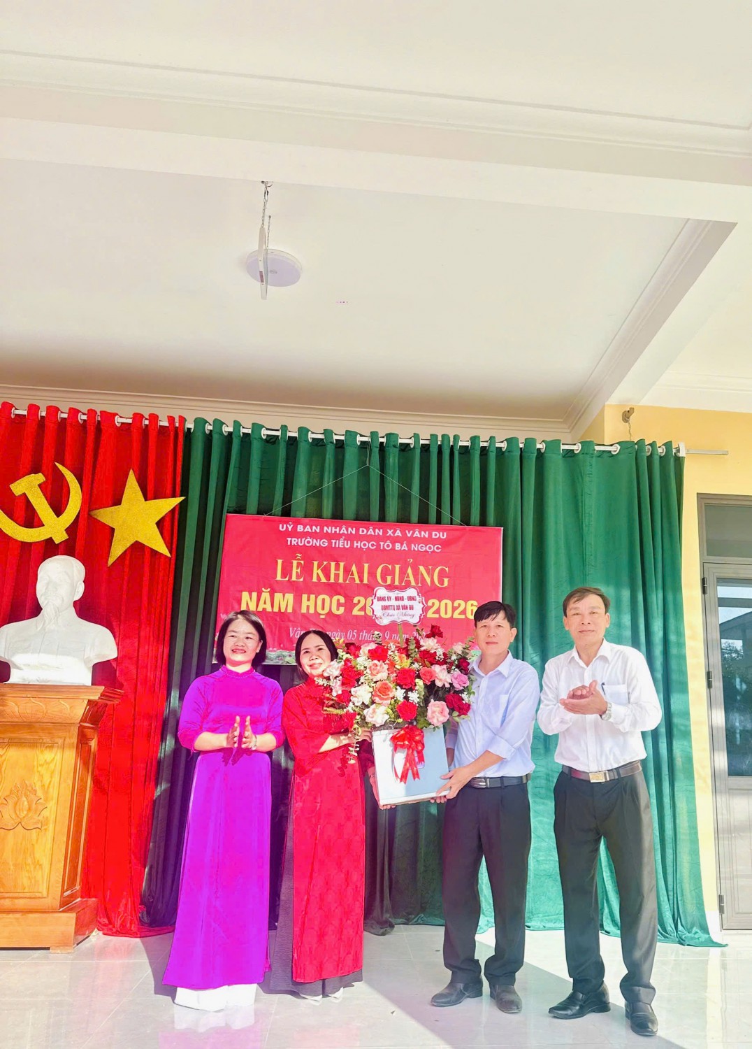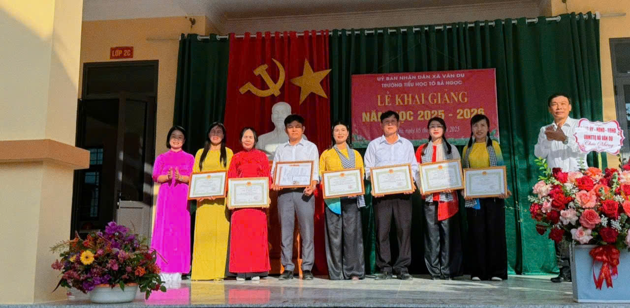 Mở đầu là phần đón chào các em học sinh lớp 1 – những gương mặt rạng rỡ, háo hức khi lần đầu bước vào ngưỡng của học sinh tiểu học. Các em được thầy cô, anh chị học sinh lớp trên nồng nhiệt chào đón, tạo nên không khí ấm áp, thân thiện. Tiếp đó, những tiết mục văn nghệ chào mừng do chính học sinh biểu diễn mang đến sự tươi vui, sôi nổi, góp phần khích lệ tinh thần toàn trường. Trong chương trình, nhà trường đã trao thưởng cho các giáo viên có nhiều đóng góp trong giảng dạy, cùng những học sinh đạt thành tích cao trong năm học trước . Đây là sự ghi nhận xứng đáng, đồng thời là nguồn động viên tinh thần quan trọng cho phong trào thi đua dạy tốt – học tốt. Phát biểu tại buổi lễ, lãnh đạo xã Vân Du gửi lời chúc mừng nồng nhiệt, ghi nhận những nỗ lực không ngừng của thầy và trò Trường Tiểu học Tô Bá Ngọc, đồng thời bày tỏ niềm tin nhà trường sẽ tiếp tục phát huy thành tích, đổi mới phương pháp dạy học, chăm lo toàn diện cho học sinh trong năm học mới.